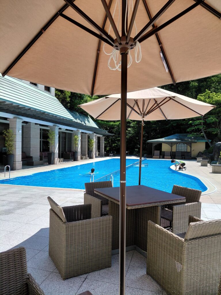 Après ce super petit-déjeuner, on est partis profiter un peu de la piscine de l’hôtel avant de reprendre la route. La veille, la tante de Hibiki nous avait emmenés dans un petit magasin pour que je puisse acheter un maillot (évidemment, je n’en avais pas pris avec moi), donc j’étais parée.