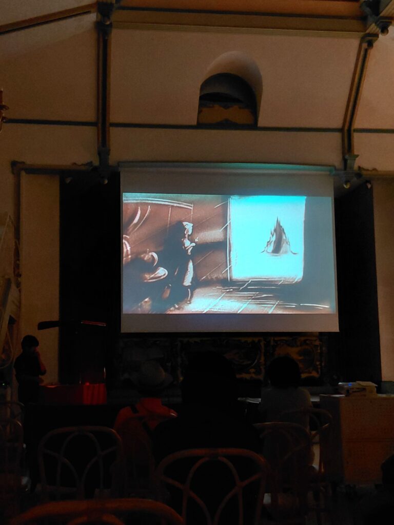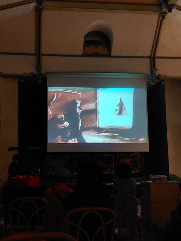 Ensuite, on est allés assister à un autre spectacle, qui m’a beaucoup marquée : deux musiciennes, une pianiste et une violoniste, accompagnaient un artiste qui faisait du dessin sur sable. Il retraçait les moments clés de l’histoire de Cendrillon en temps réel, en créant des images avec du sable projetées sur grand écran. C’était vraiment magnifique et très poétique. Je crois que ça, ça a été mon deuxième moment préféré.
