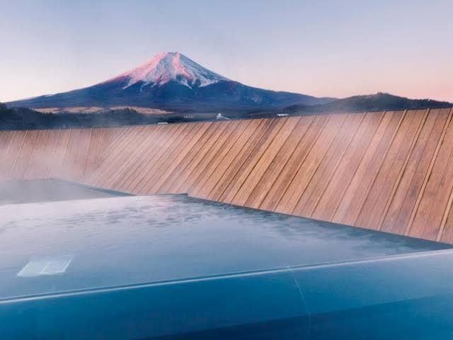 Et là… quand je suis entrée dans l’eau, je l’ai vu. Le mont Fuji, juste en face. Pas une carte postale, pas une silhouette au loin, mais le vrai, immense, imposant. Je n’ai pas pu prendre de photo — évidemment, c’est interdit, on est nus dans les bains — mais peut-être que c’est mieux ainsi : juste moi, dans l’eau chaude, face à cette montagne sacrée. On voyait même certains détails qu’on ne distingue pas quand on le regarde de loin. Ce n’était pas effrayant, mais… impressionnant. Majestueux. Et moi, toute petite dans mon bain, je me suis juste laissée absorber par ce moment.
