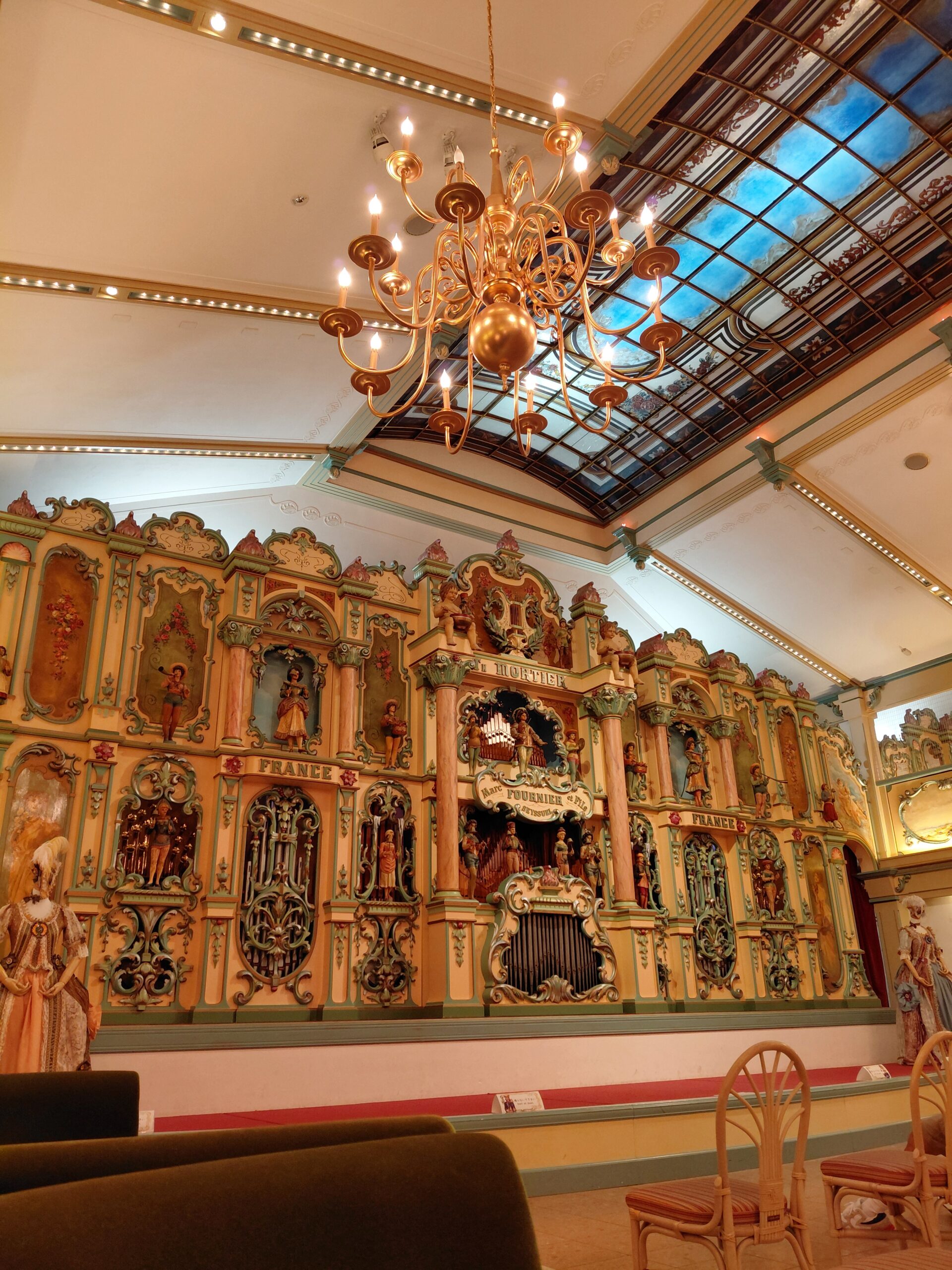Dans ce musée, il y avait plusieurs mini-spectacles, un peu comme des performances mettant en scène les différentes machines automatiques. La première que nous avons faite, c’était une démonstration d’orgue automatique – l’instrument en version géante, qui joue tout seul. C’était impressionnant de voir cette machine fonctionner et d’entendre la puissance de l’instrument… peut-être même un peu trop puissant, parce que j’ai passé le spectacle avec les oreilles à moitié bouchées tant le son était fort ! Mais ça restait fascinant à voir.